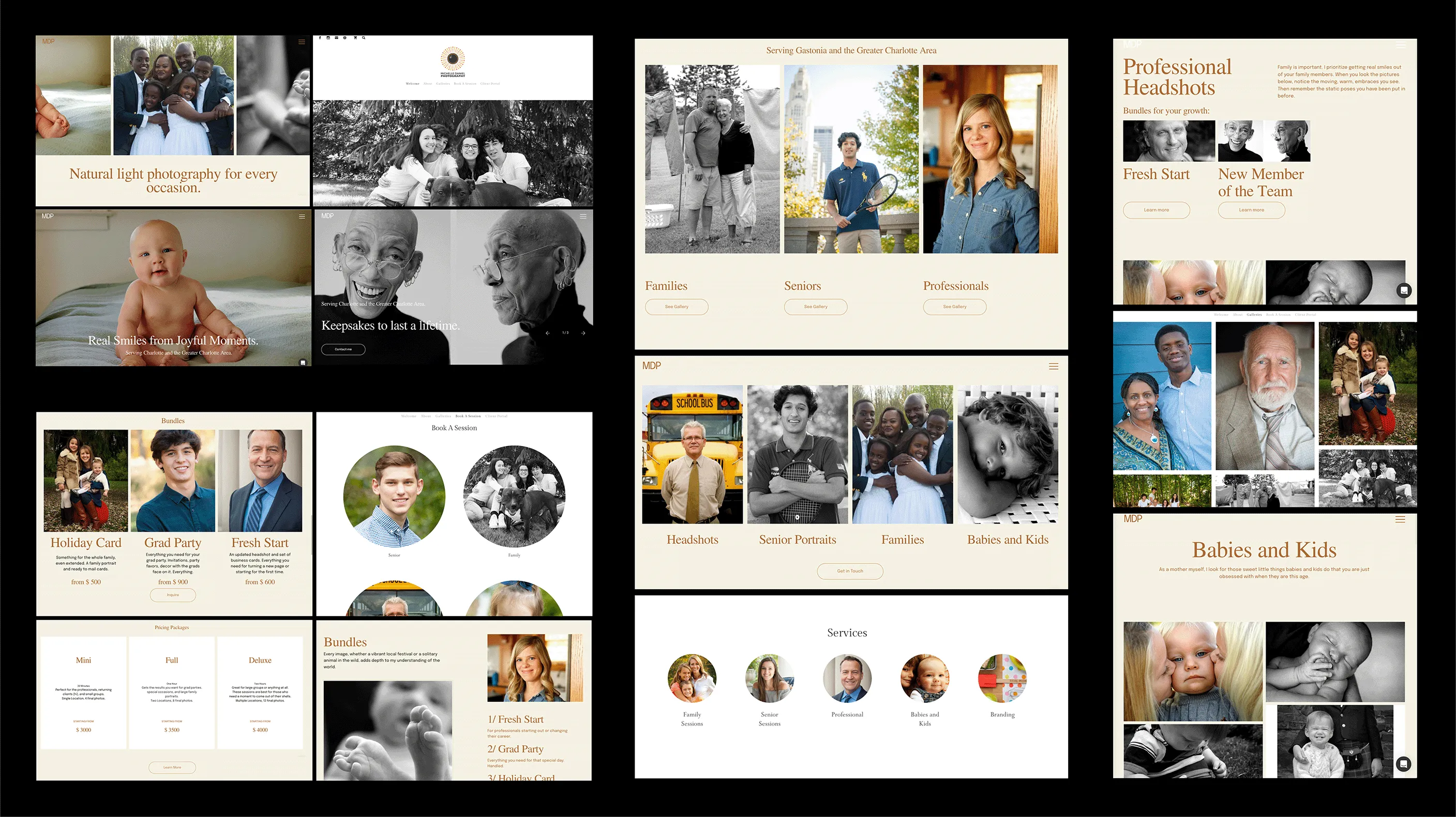 A responsive site that helped a photographer adjust to a new city and capture local leads fast. Instead of defaulting to industry-standard portfolio style, we implemented e-commerce principles so visitors can quickly browse, compare, and book services.