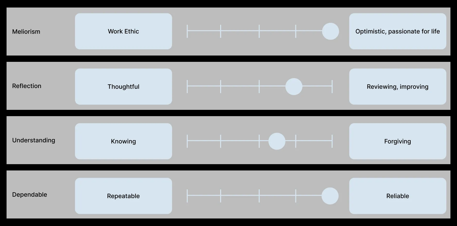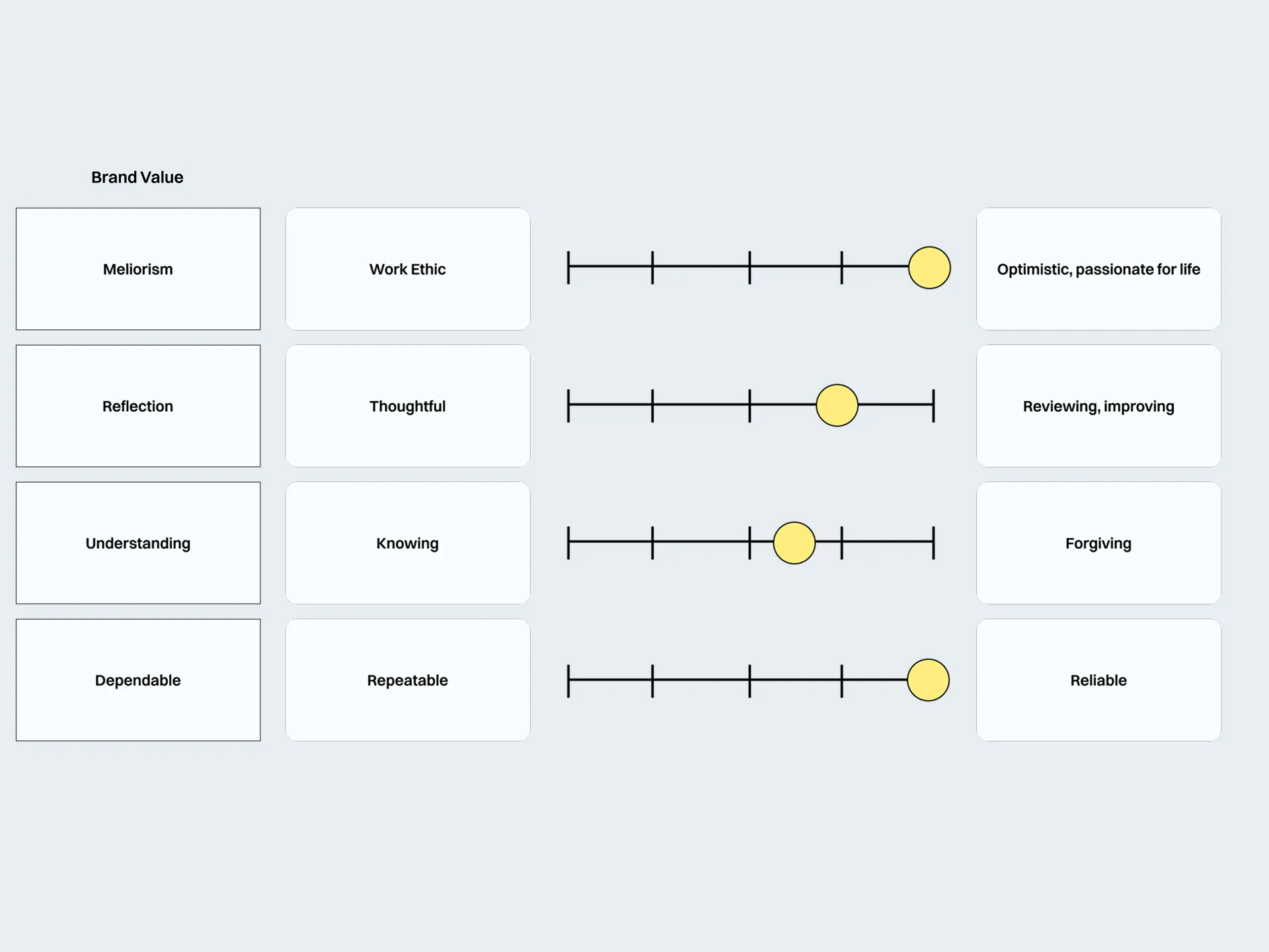 A value rating diagram depicting the which aspects of the final brand values will be expressed in the final product.