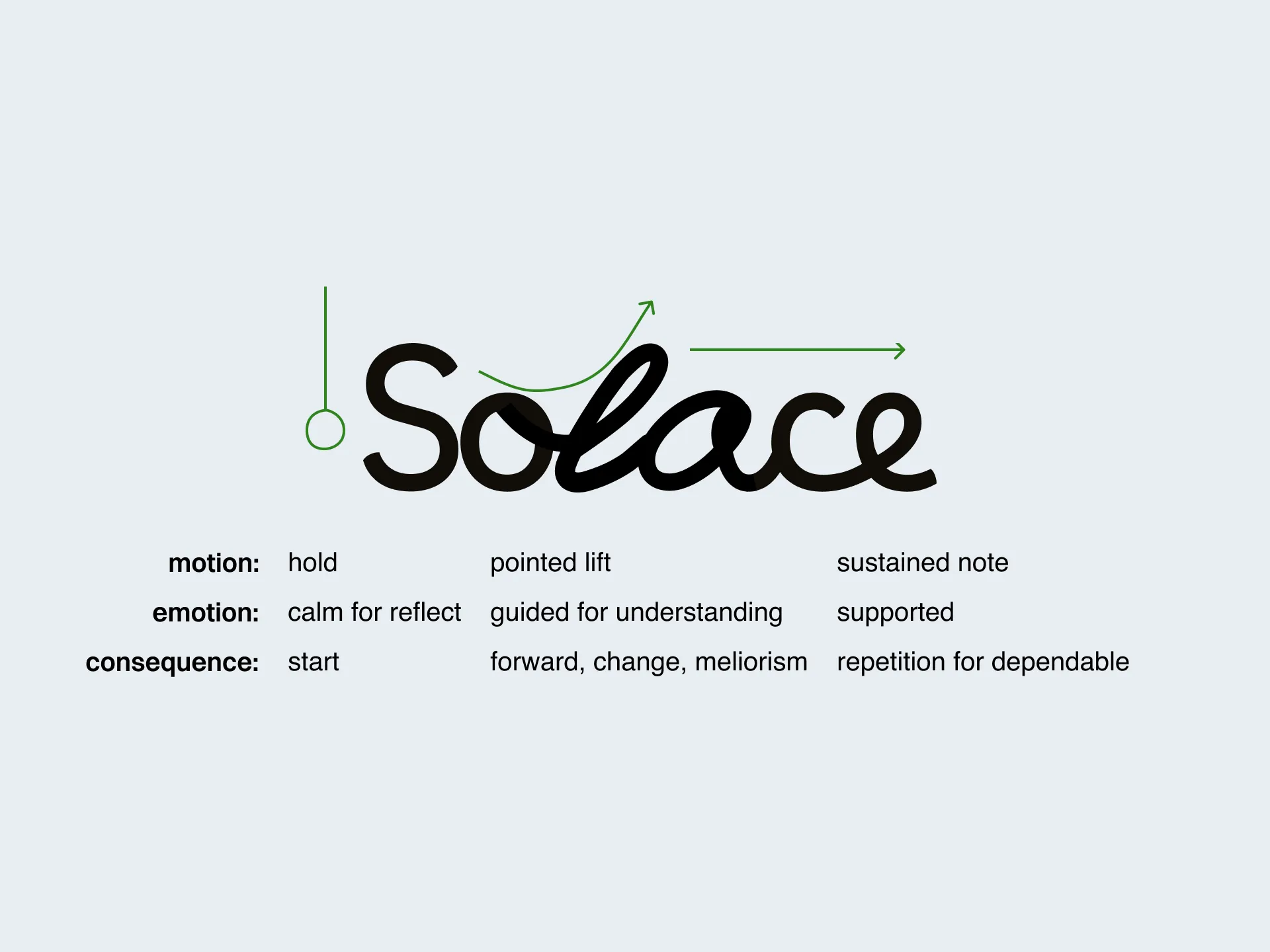 With the most somber sounding name chosen, the logo had to help provoke a new association with the word Solace. Using child-like script with no variation in the line weight makes it feel optimistic and reliable.