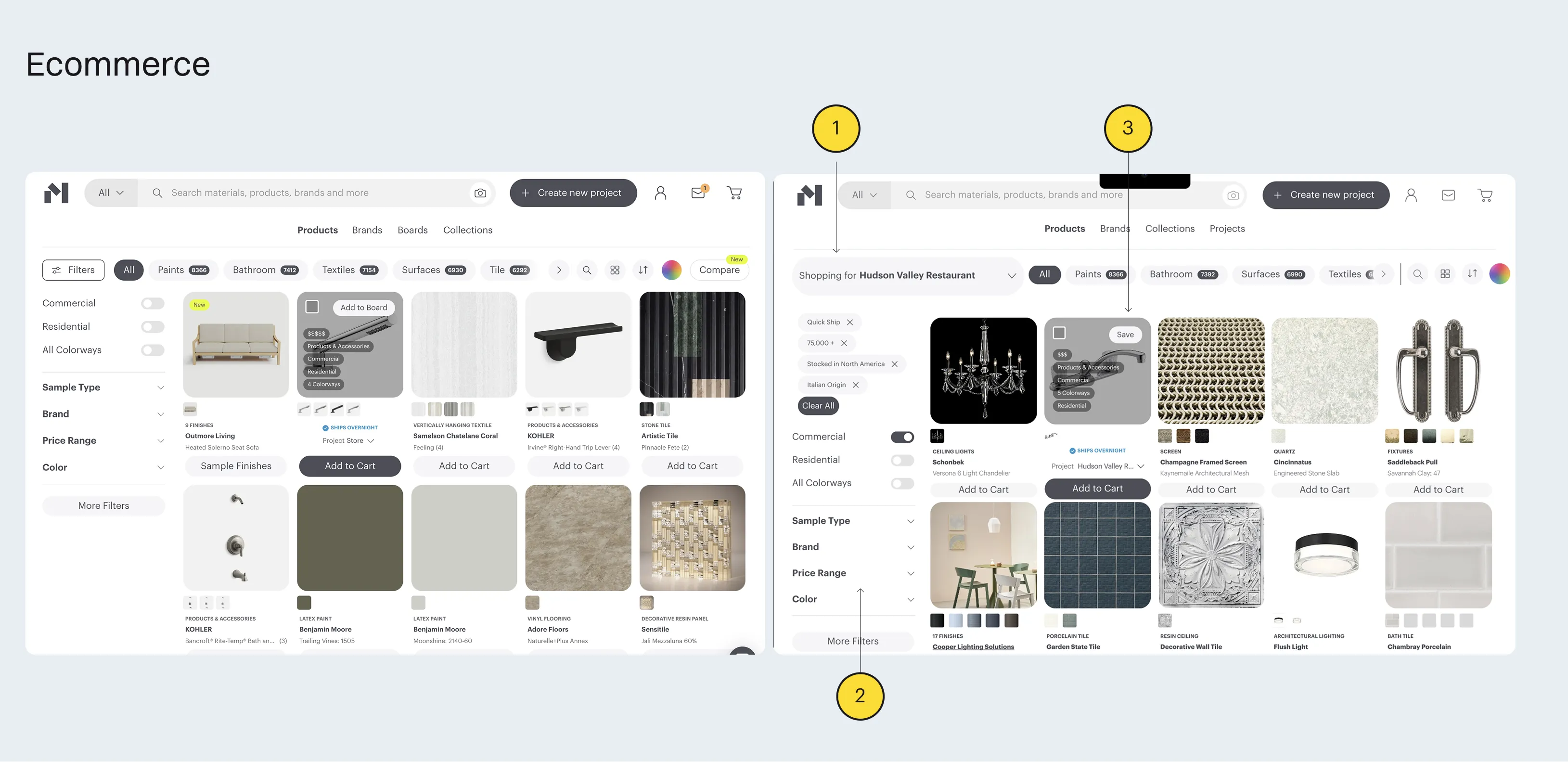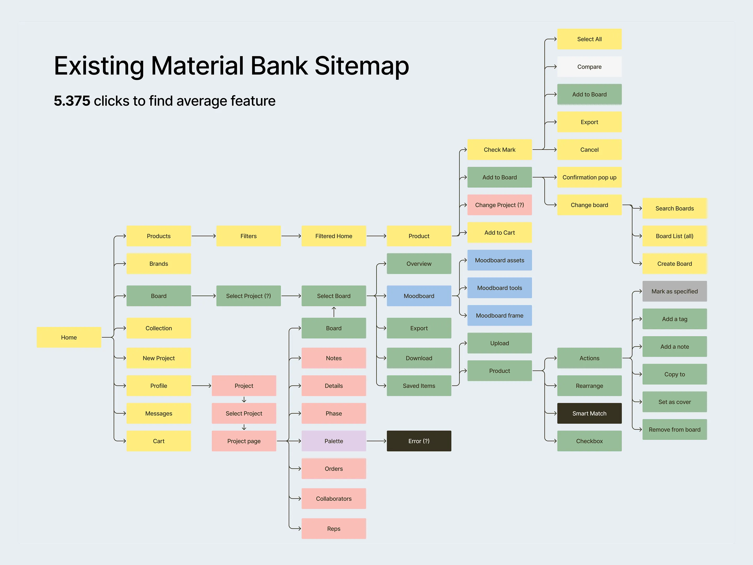 We began by interviewing designers about their fabric sourcing process and workflow pain points. Through this, we uncovered that Material Bank’s strongest tools often caused confusion instead of clarity.