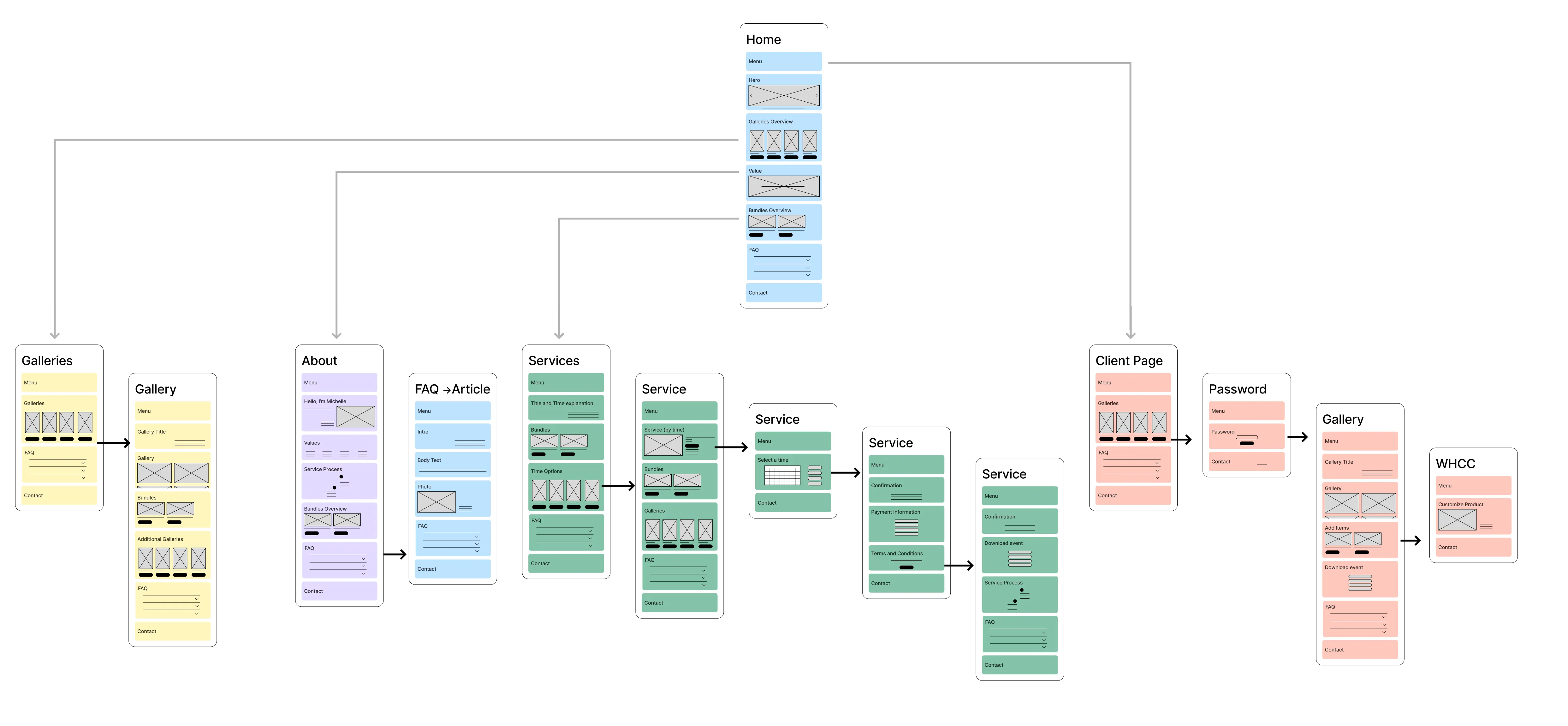 Bridging these needs meant designing a customer journey that felt both elevated and approachable. For Sasha, who aspires to professional-quality photos but sees cost and access as barriers, the experience needed to feel unintimidating and flexible—emphasizing low-pressure entry points, transparent pricing, and clear guidance. For Lianne, who seeks a streamlined, no-hassle process, clarity, efficiency, and follow-through were paramount. Mapping both journeys revealed shared emotional highs—like feeling seen, celebrating milestones, and enjoying the final product—and shared lows, including confusion, decision fatigue, and uncertainty. By building in touchpoints that restored confidence (like previews, confirmations, and warm messaging), and removing friction where possible, the site design creates a unified path that can scale up or down depending on the client.